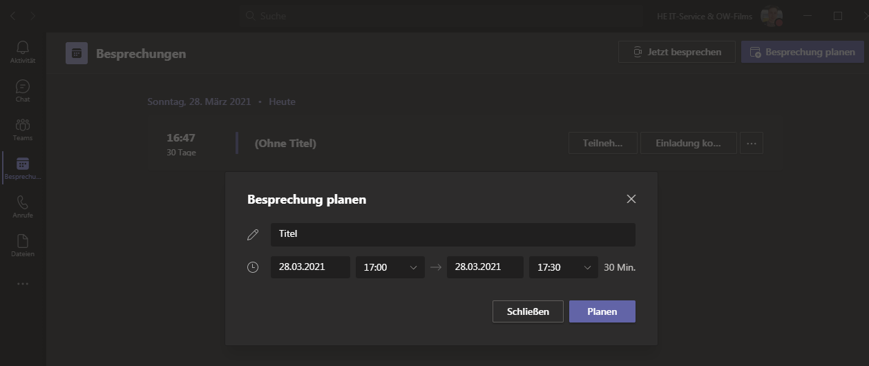 Besprechung planen